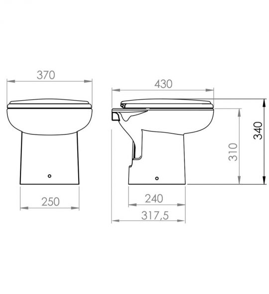 SANIMARIN — это очень компактный унитаз, который можно установить на судно независимо от того, насколько ограничено пространство на борту. Небольшие размеры (310 мм в высоту, 370 мм в ширину и 430 мм в глубину) и малая площадь установки позволяет легко монтировать унитаз в любом пространстве.