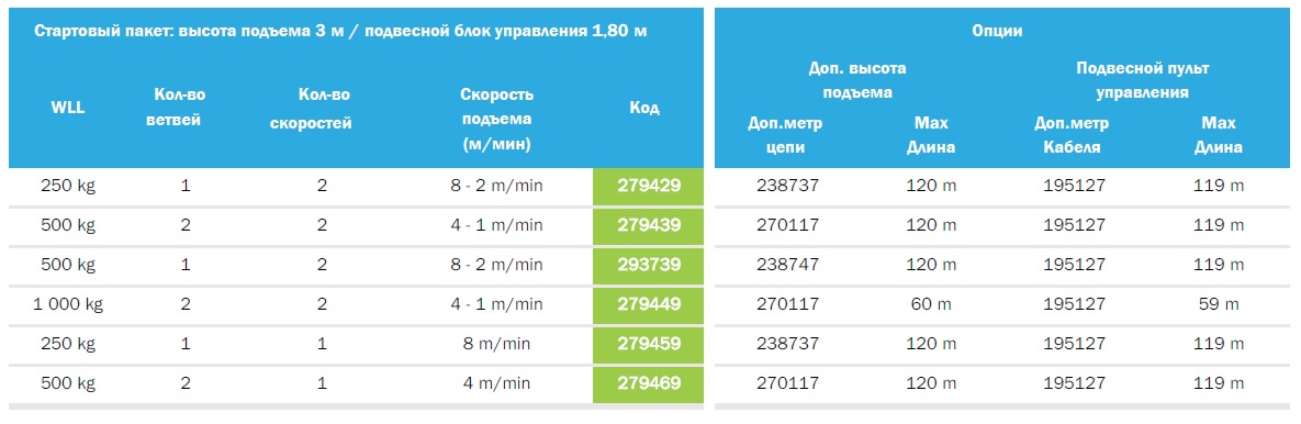 • FEM Классификация FEM: 2 M / ISO: M5 • Степень защиты: IP 65 (подъемник) • ВЕРХНИЙ и НИЖНИЙ концевые выключатели • Встроенное устройство ограничения нагрузки • Нижний крюк из нержавеющей стали / грузовая цепь из нержавеющей стали • Трансмиссионная смазка, совместимая с пищевой промышленностью • Верхний крючок из нержавеющей стали в комплекте Настройте свой подъемник tralift™ TTR, начиная со стартового комплекта. Добавьте нужные опции, чтобы получить подъемник tralift™ TTR, соответствующий вашему проекту.