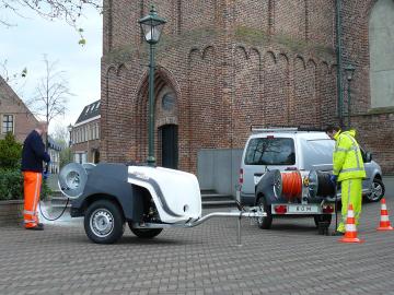 Rom SmartTrailer профессиональные прицепы для промывки трубопроводов высоким давлением предназначены для очистки домовых трубопроводов и магистральных санитарных канализационных трубопроводов диаметром до Ø 500 мм. Доступны прицепы с бензиновыми или дизельными двигателями. Вы также можете подобрать оптимальное для вас сочетание высокого давления и скорости струи. Насос высокого давления обеспечивает давление до 250 бар и скорость струи в 100 л/мин. Также существует несколько вариантов резервуаров для воды: 300, 450, 500 и 900 л.