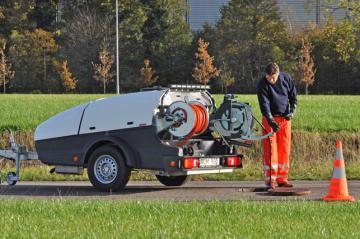 Rom 900 профессиональные прицепы для промывки трубопроводов высоким давлением предназначены для очистки домовых трубопроводов и магистральных санитарных канализационных трубопроводов диаметром до Ø 500 мм. Доступны прицепы с бензиновыми или дизельными двигателями. Вы также можете подобрать оптимальное для вас сочетание высокого давления и скорости струи. Насос высокого давления обеспечивает давление до 250 бар и скорость струи в 100 л/мин. Также существует несколько вариантов резервуаров для воды: 300, 450, 500 и 900 л.